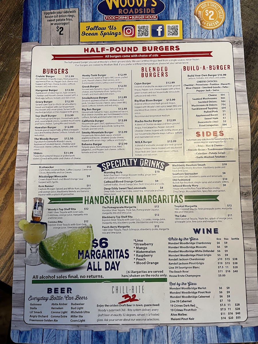 Signature house made Woody's sauce, Applewood smoked bacon, cheddar and provolone cheese. Lettuce, tomato and red onion.