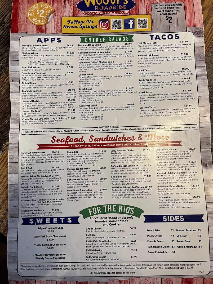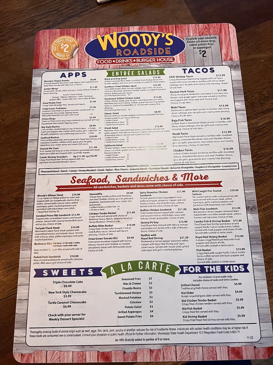 Wild caught fried Royal Reds dressed with lettuce, tomato and pickles and served with a side of Woody's Sauce and seasoned fries.